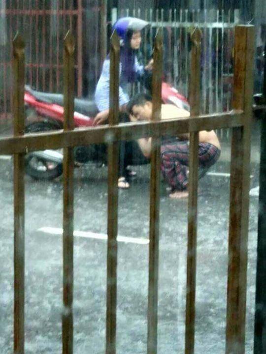 Dalam foto tersebut sosok pria dan wanita ini diduga yakni sepasang kekasih. Tampak pula, dikala itu di tengah hujan lebat sang pemuda yang sudah kedinginan alasannya tidak mengenakan baju nya, terlihat bersujud di depan wanita yang di perkirakan sebagai pacarnya.