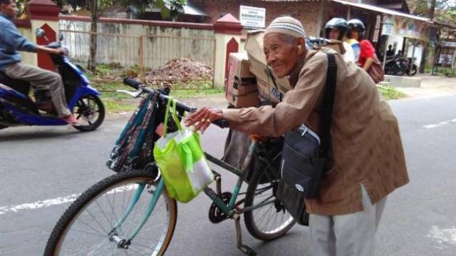 4. Kakek 104 Tahun Ini Mengayun Sepedah Untuk Menjual Sabun Keliling